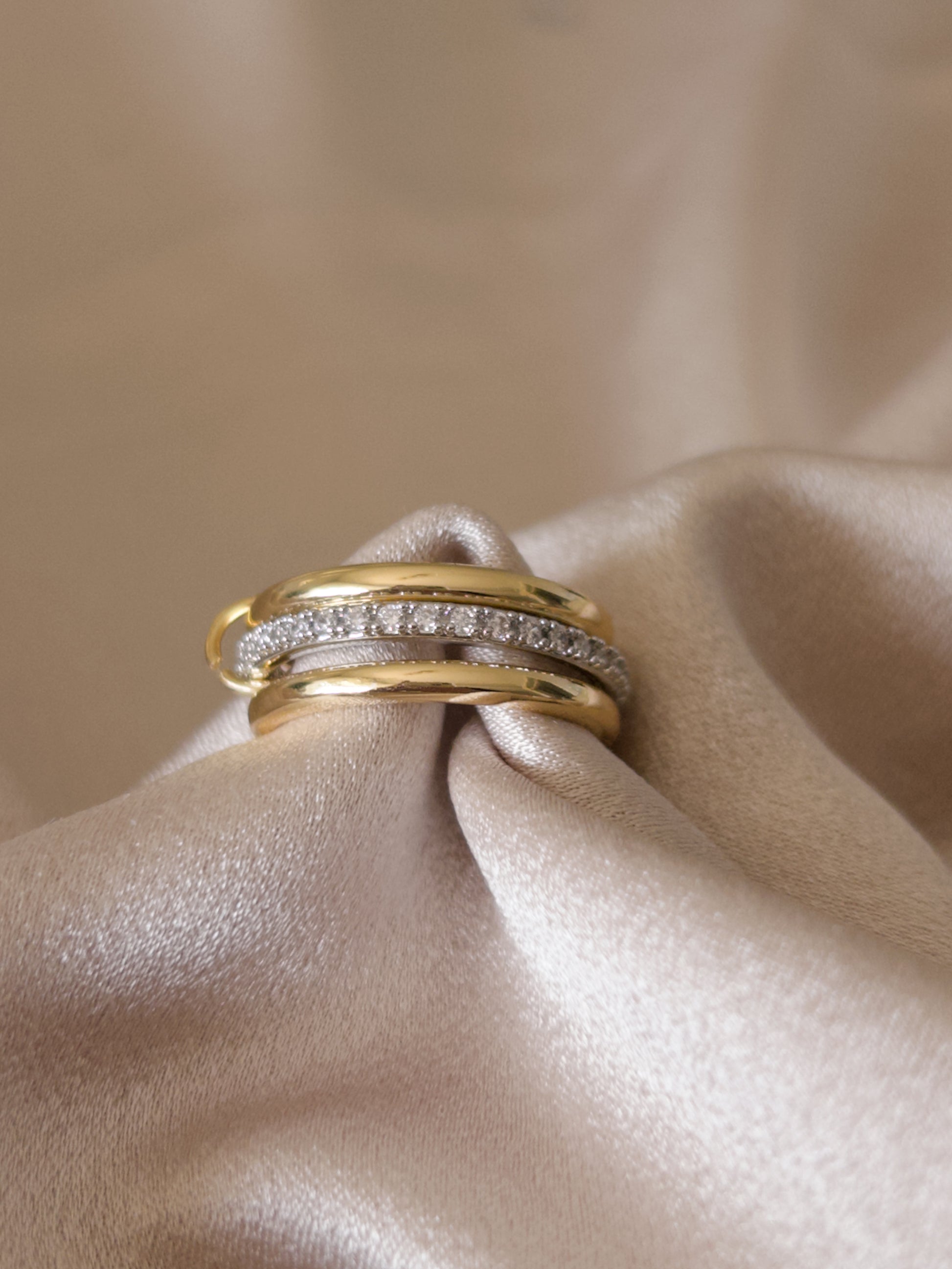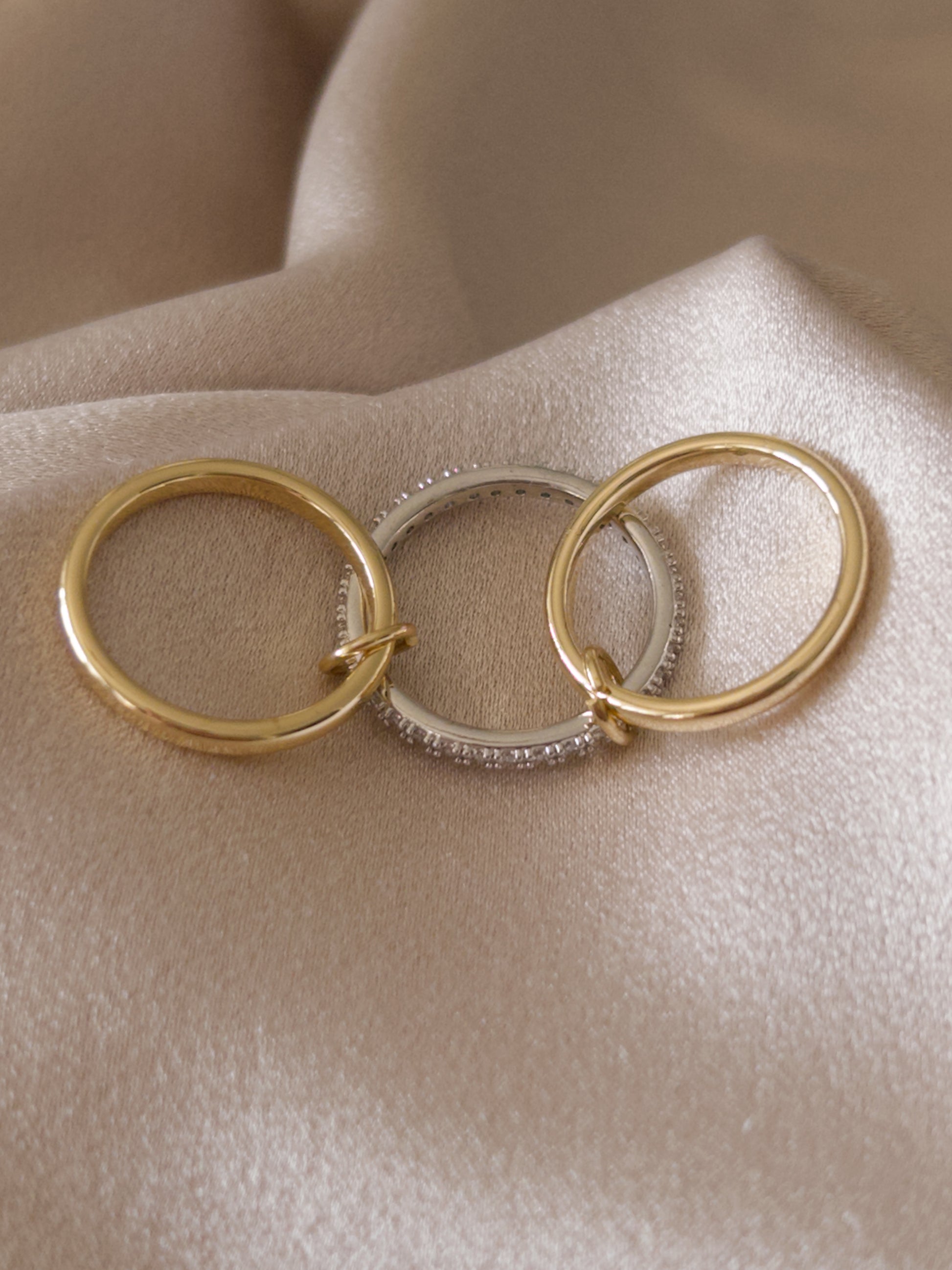 - Ürün iki altın rengi, bir taşlı olmak üzere standart ebatlarda üçlü çelik yüzüktür.