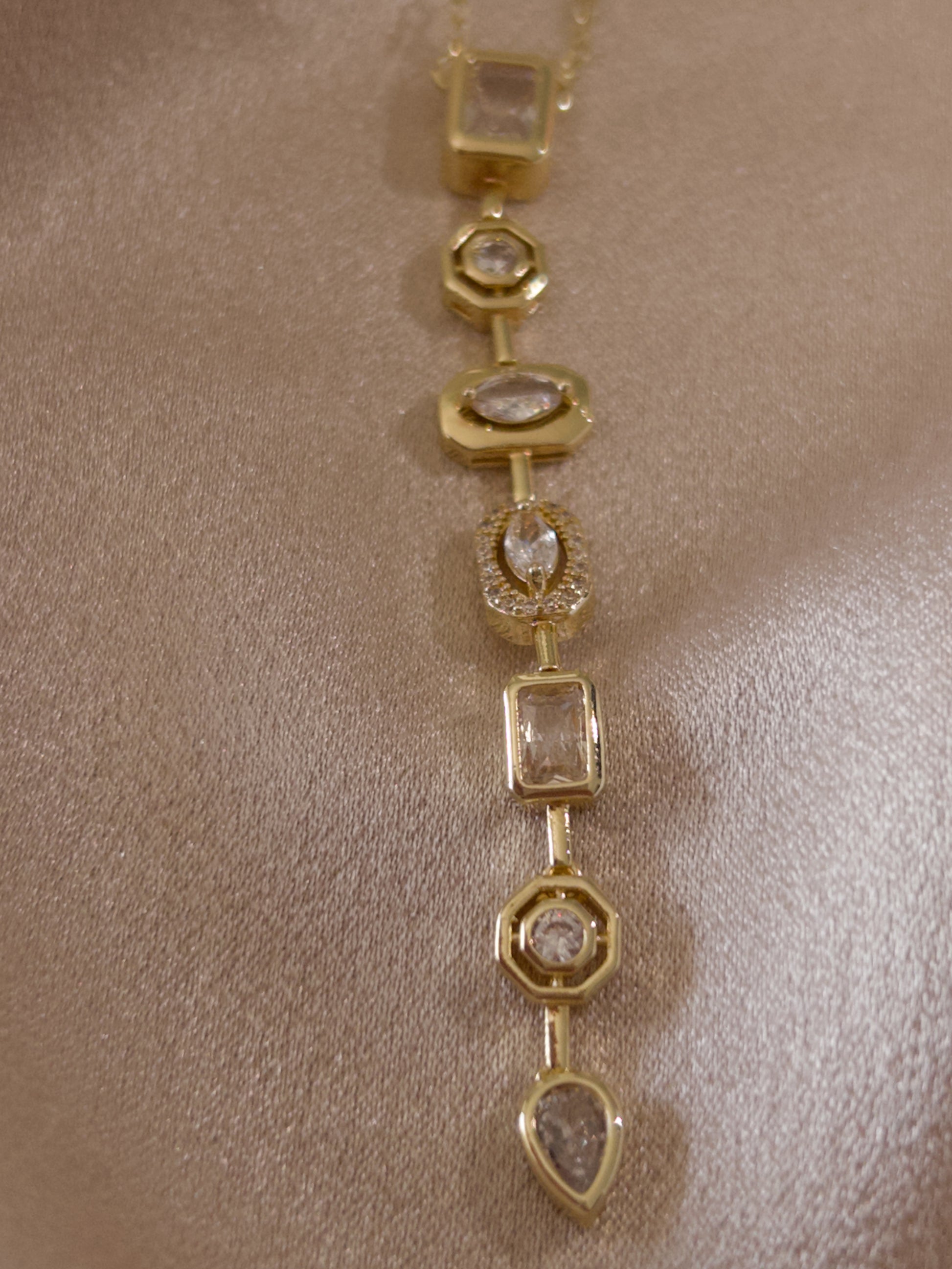 - Taşlı, desenli, altın rengi çelik kolye.