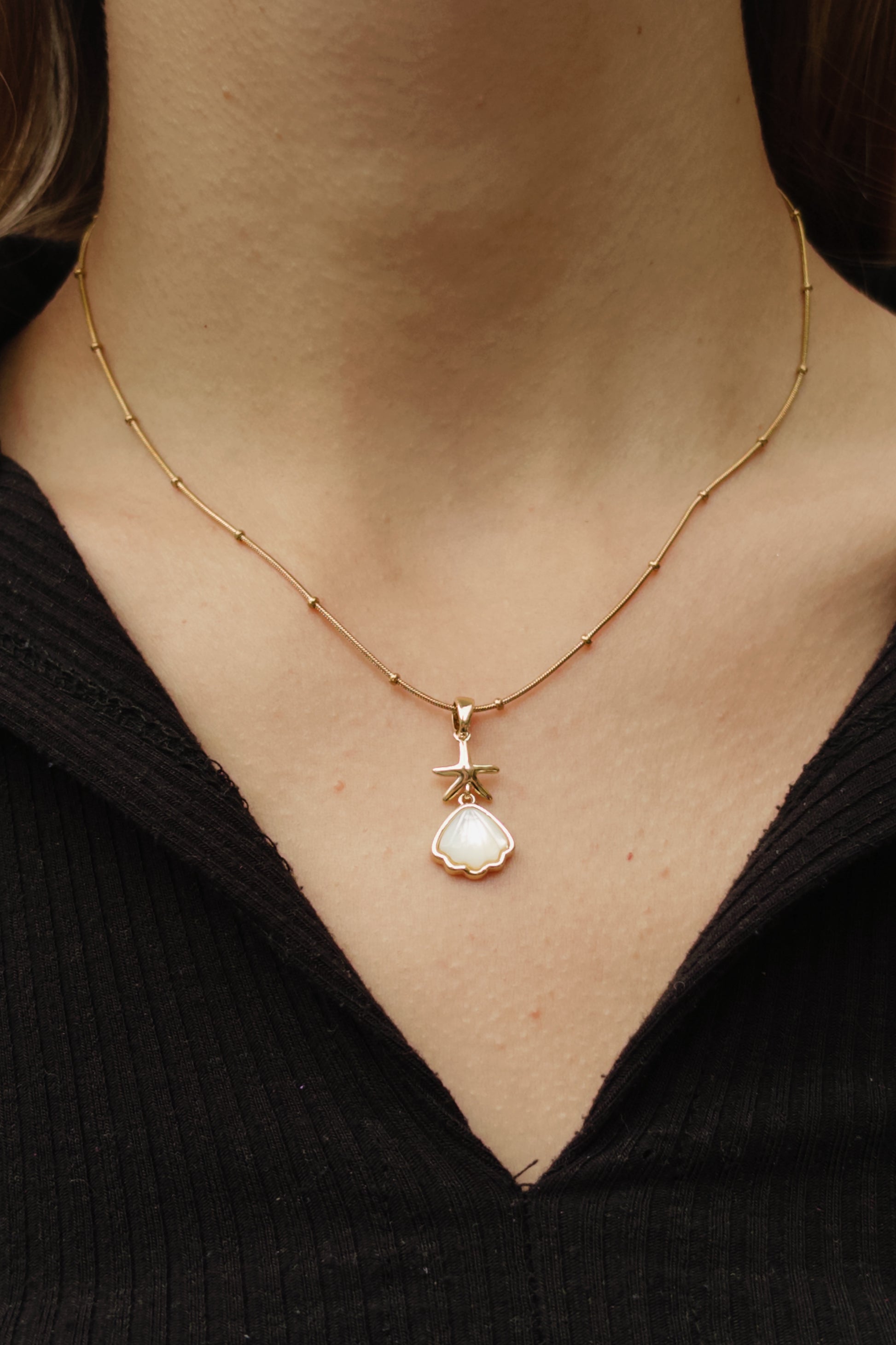 - Altın rengi çelik kolye.