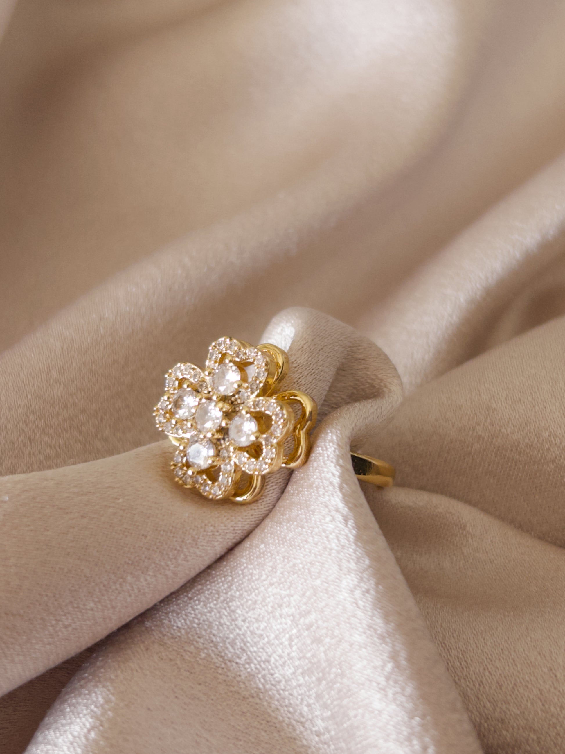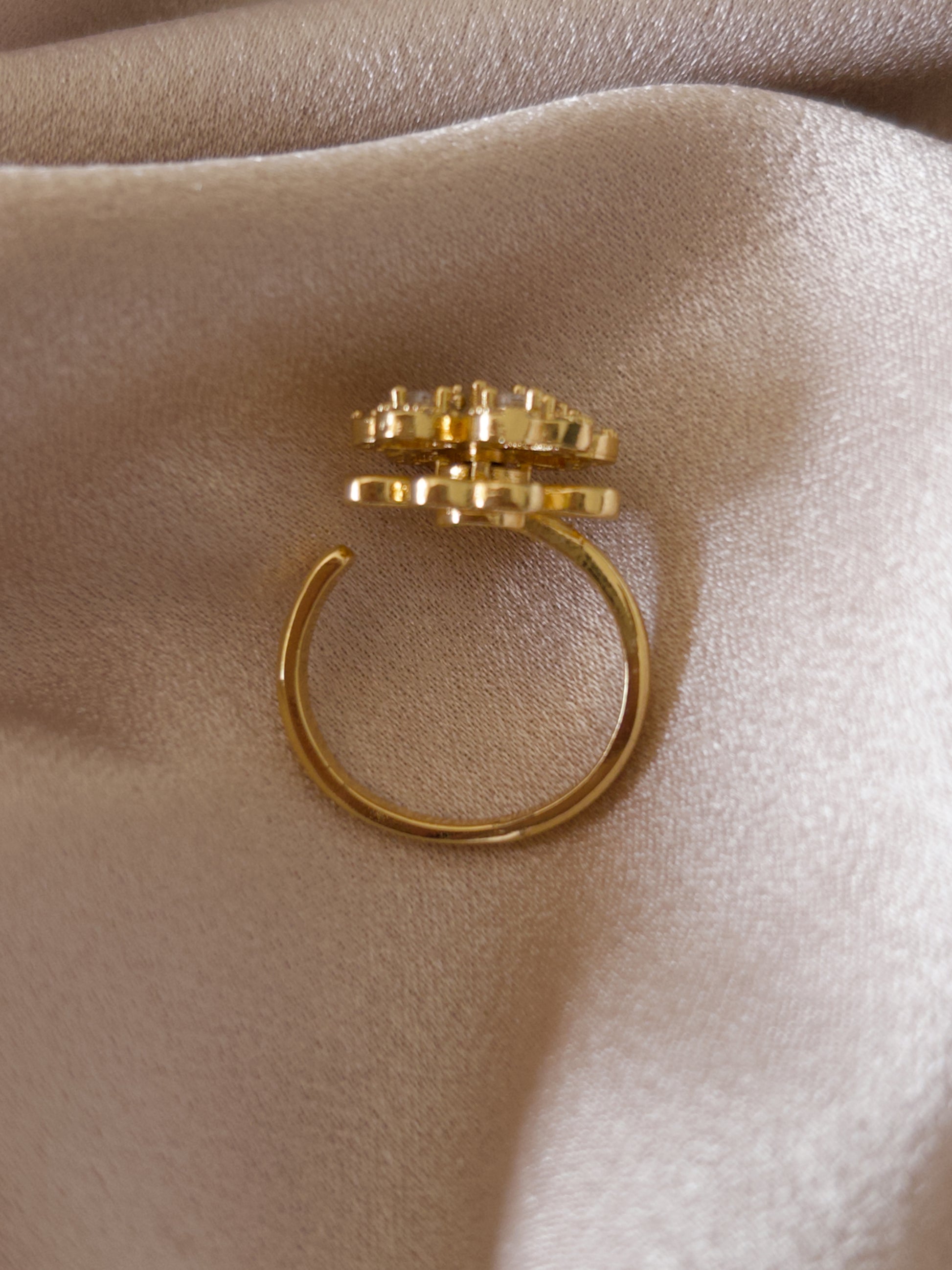 - Ayarlanabilir, altın rengi, hareketli çelik yüzük.