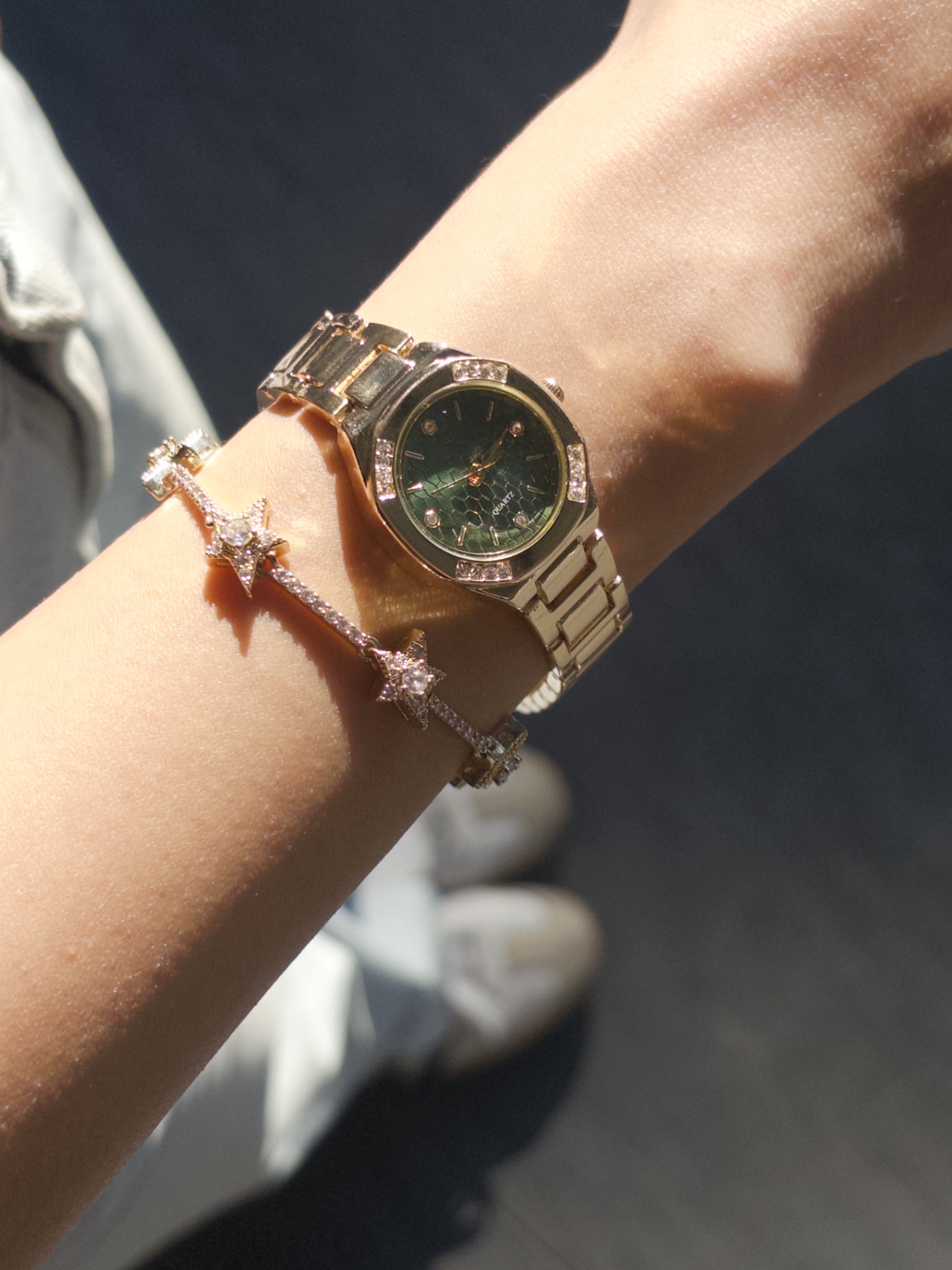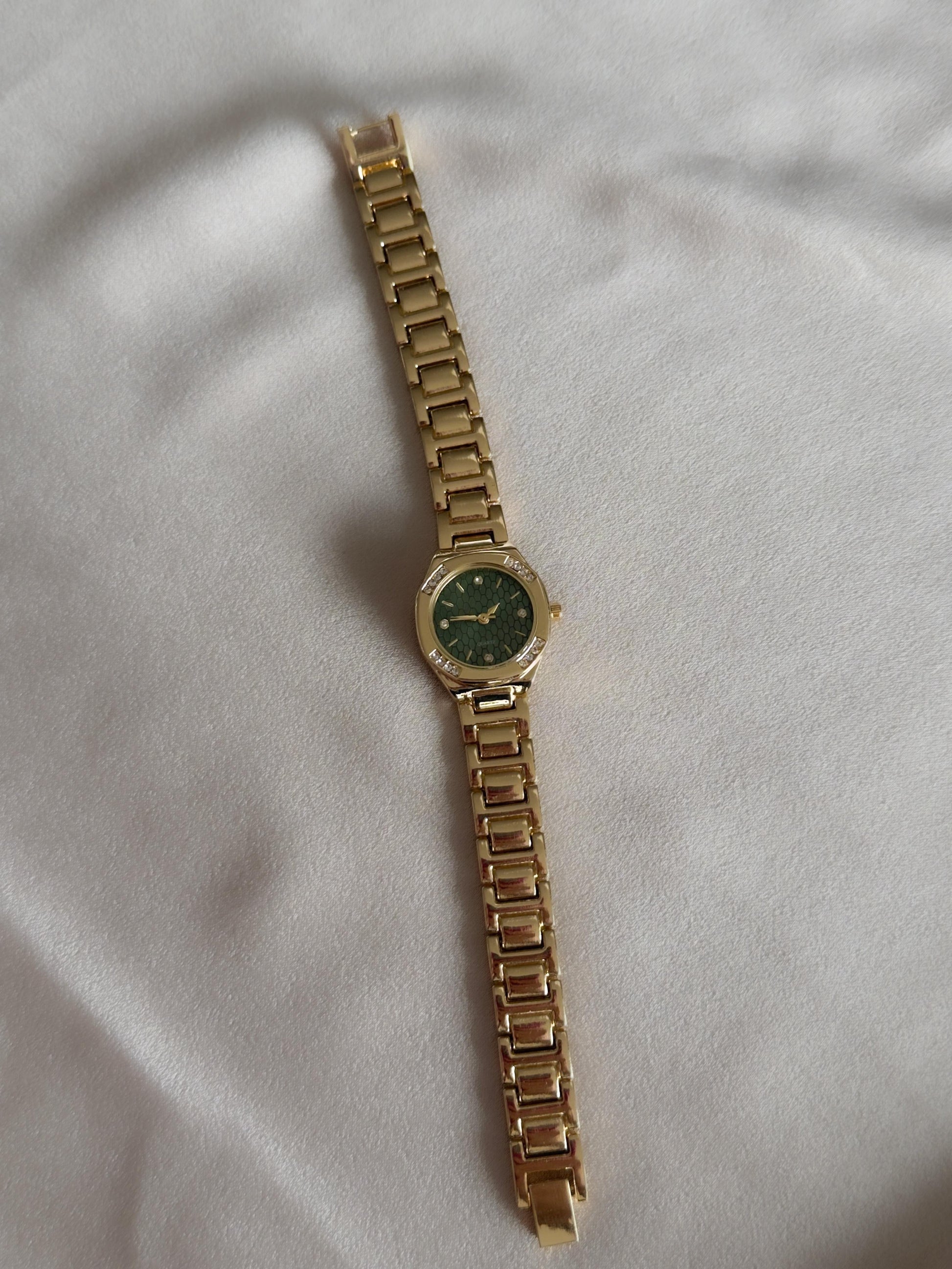 TAŞLI YEŞİL KADRAN SAAT GOLD