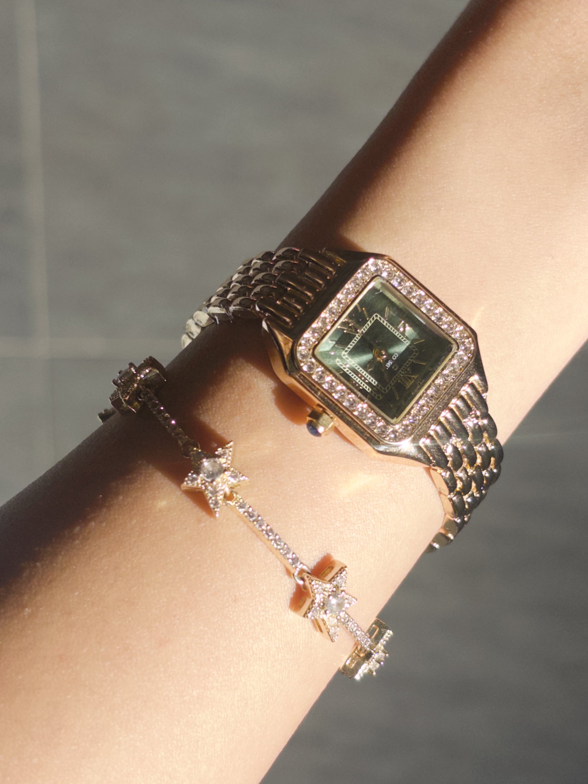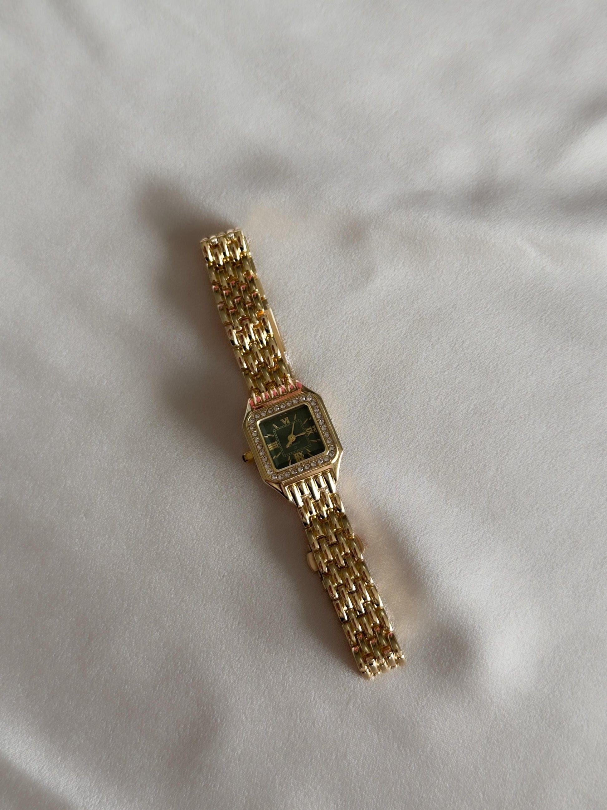 TAŞLI YEŞİL KARE KADRAN SAAT