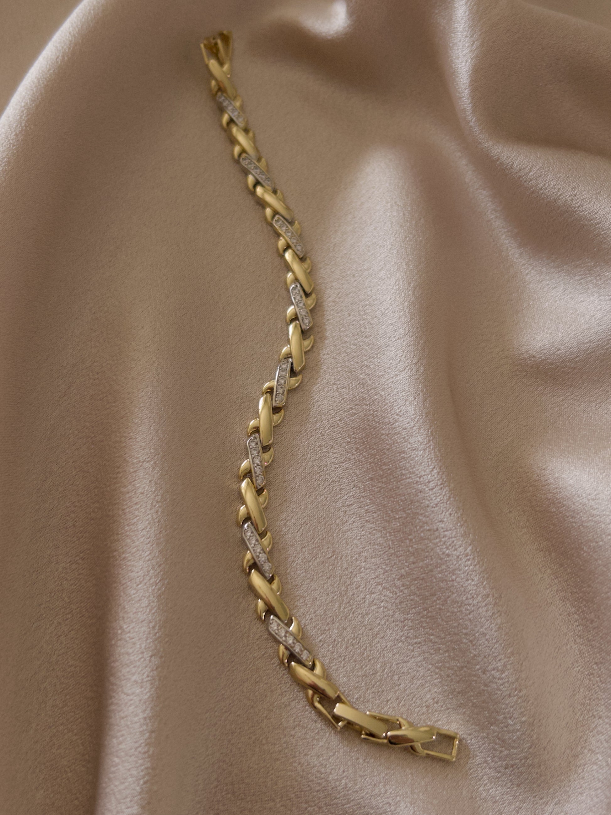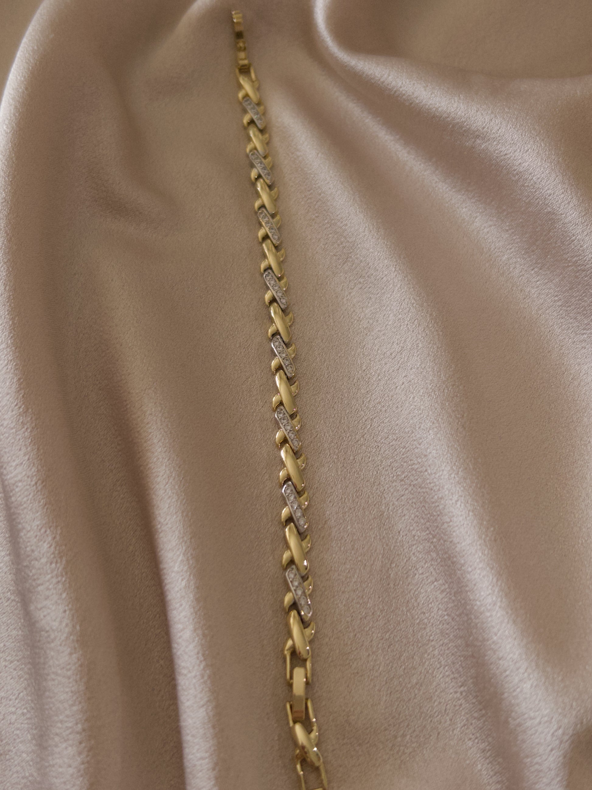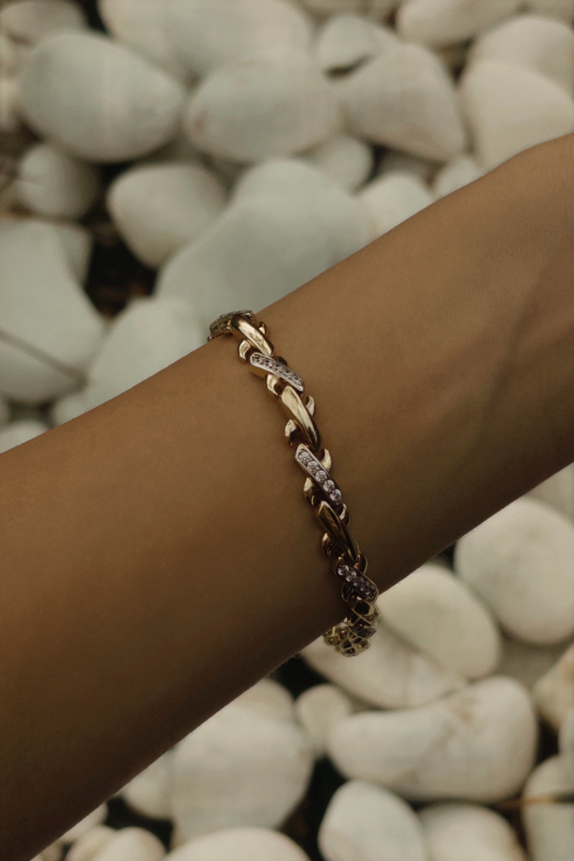 - Taşlı, desenli, altın rengi çelik bileklik.
