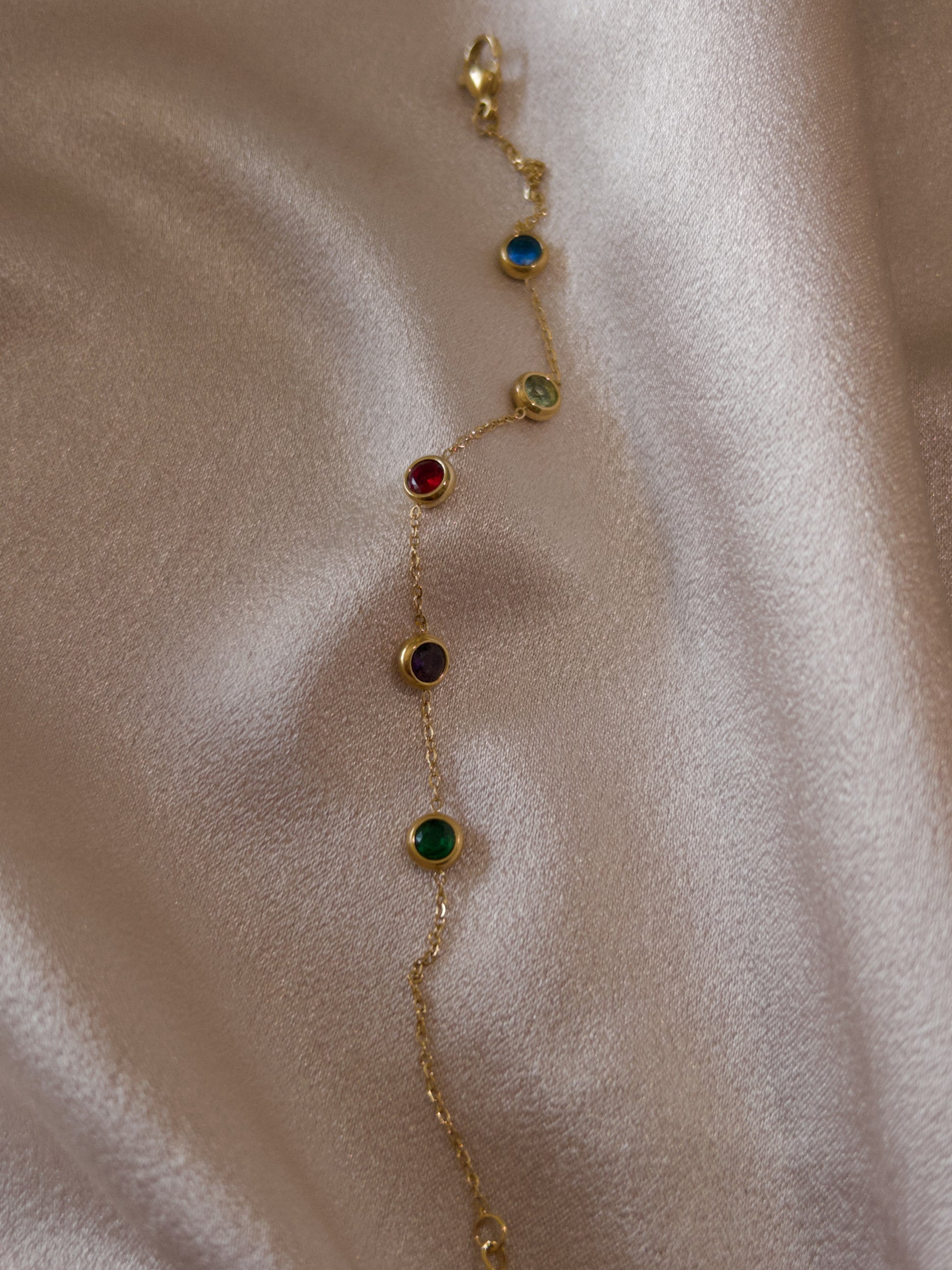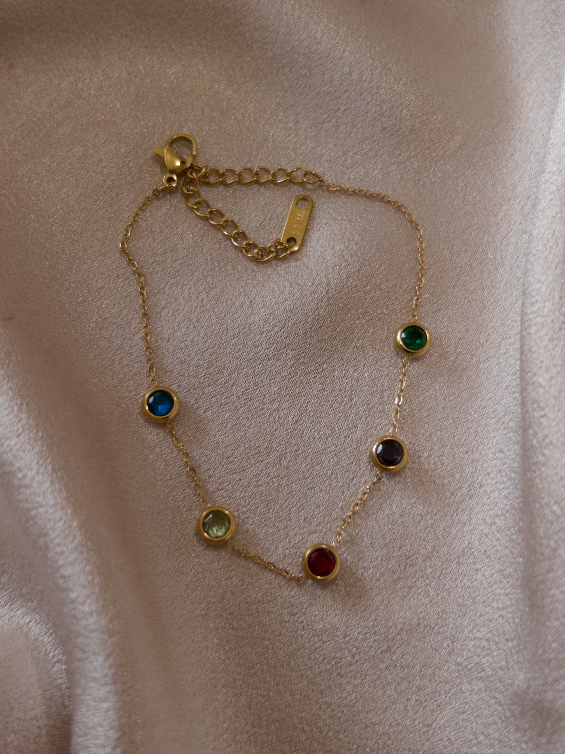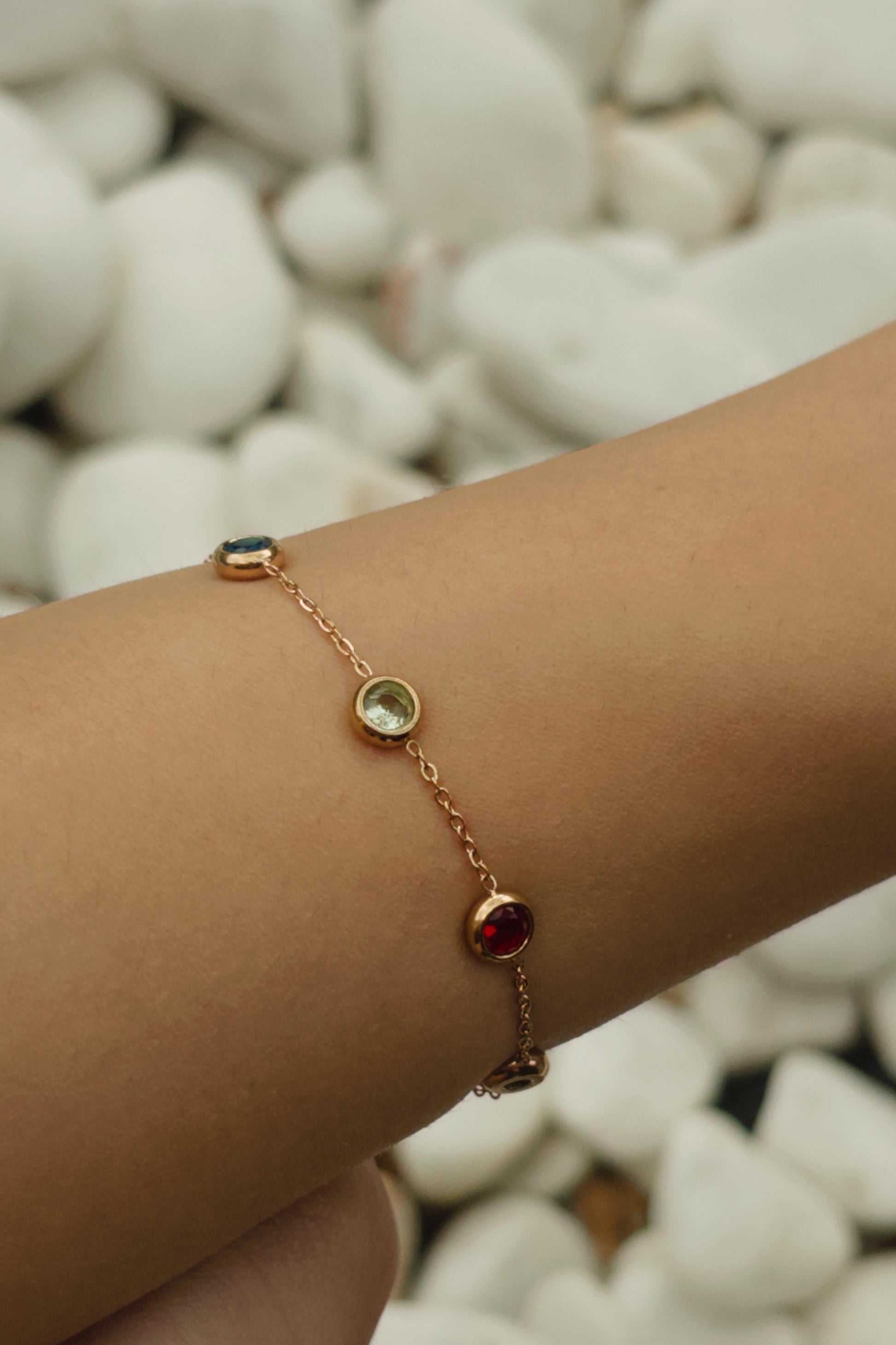 - Taşlı, desenli, altın rengi çelik bileklik.